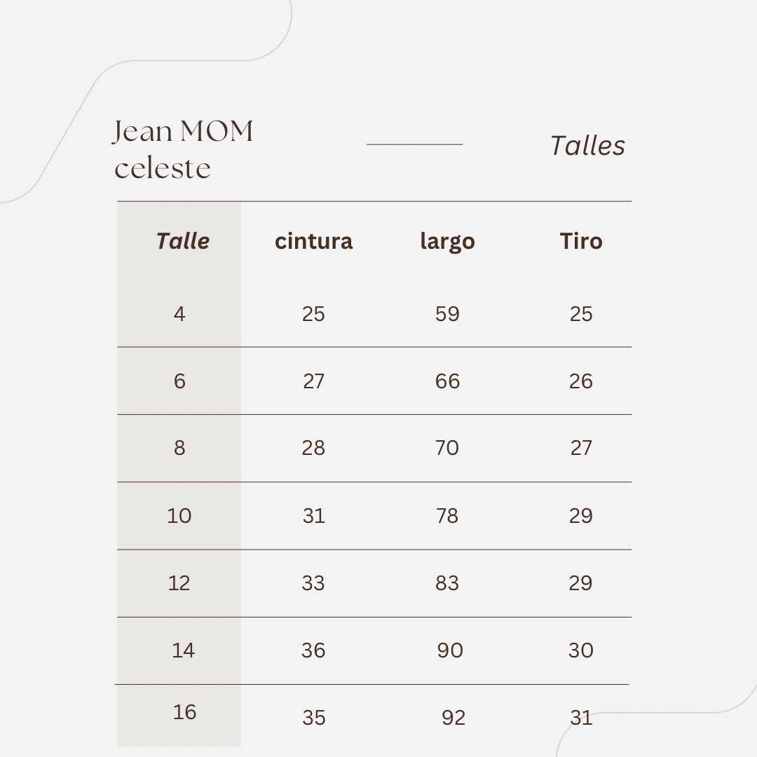 Características Destacadas: - Corte mom que realza la silueta con un ajuste relajado. - Tonalidad clarita, perfecta para combinar con prendas de temporada. - Tela resistente y suave que garantiza durabilidad y comodidad durante todo el día.